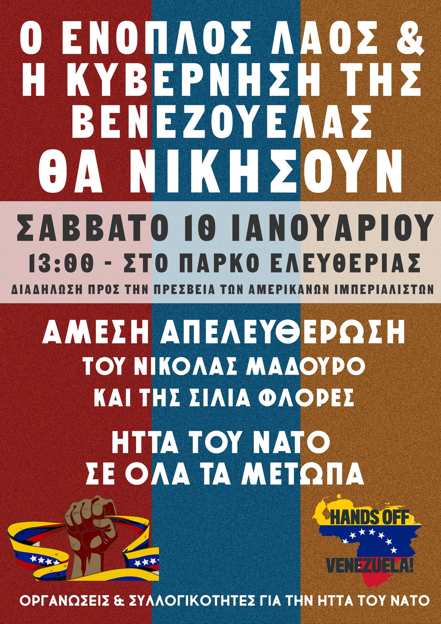 Σε ολόκληρο τον πλανήτη και ειδικά στη Λατινική Αμερική, όπως και στην χώρα μας, το Σάββατο αποτέλεσε μέρα διεθνιστικής αλληλεγγύης και καταδίκης της ένοπλης επέμβασης των ΗΠΑ και της απαγωγής του νόμιμα εκλεγμένου προέδρου της Βενεζουέλας και της γυναίκας του.